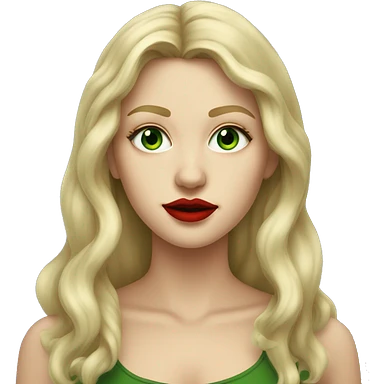 A tall, long-haired blonde girl with green painted eyes, red lips, in the style of old many emoji