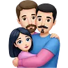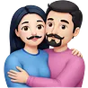 Tall strong white man with brown mustache goatee wearing blue hugging a chubby short pale woman with long black hair wearing pink emoji | AI Emoji Generator