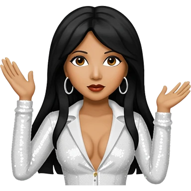 Toni Braxton with long dark brown hair, white sequin outfit emoji