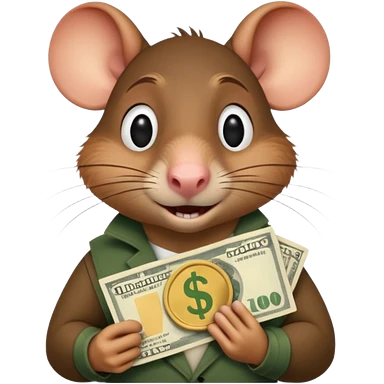 roddy the rat from the movie Flushed Away, holding cash emoji