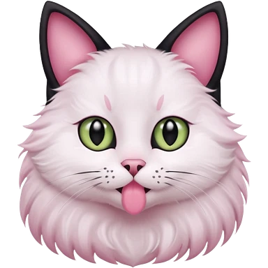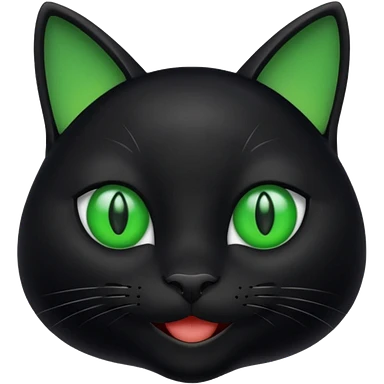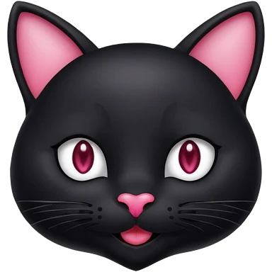 a black cat with black pupils and white eyes, with soft pink ears, looking to the side in an Apple-style emoji