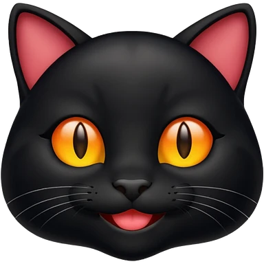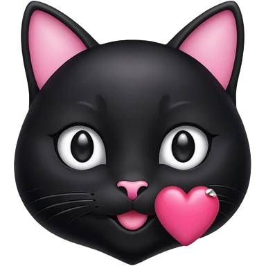black smiling cat in the Apple style with white eys and pink hear emoji