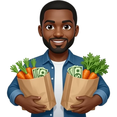 Black man holding grocery bags full of carrots and money emoji