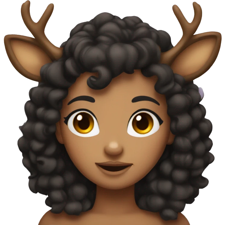 tan deer girl with black curly hair and antlers emoji | AI Emoji Generator