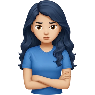Hispanic girl dark long wavy hair crossing her arms with slight pout black long sleeve shirt emoji