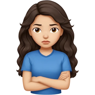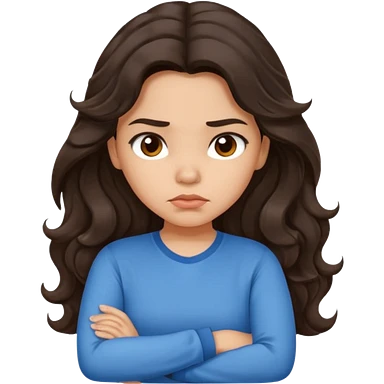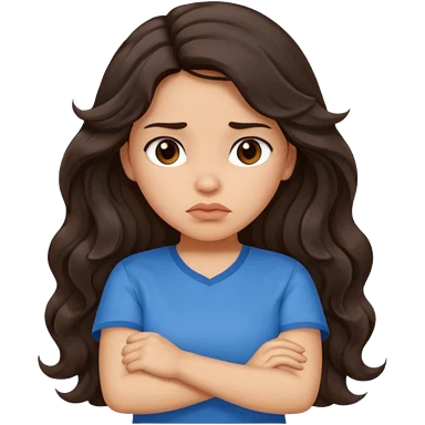 Hispanic girl with long dark brown wavy hair crossing her arms and pouting emoji