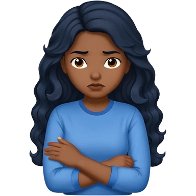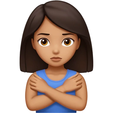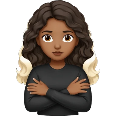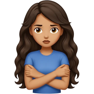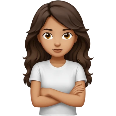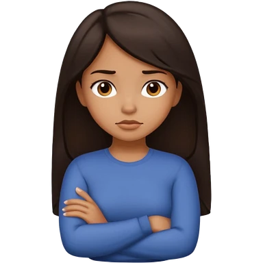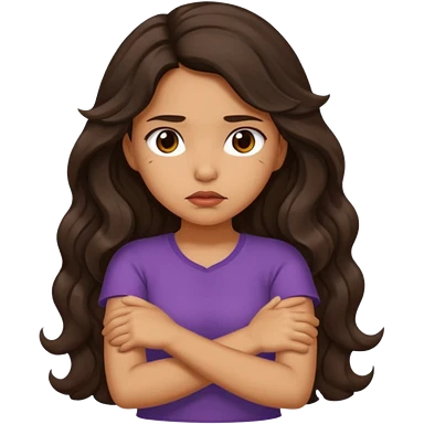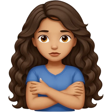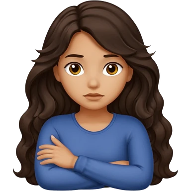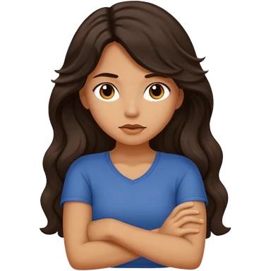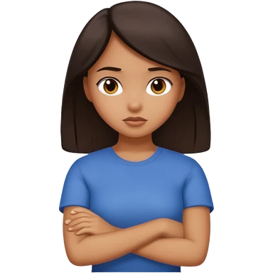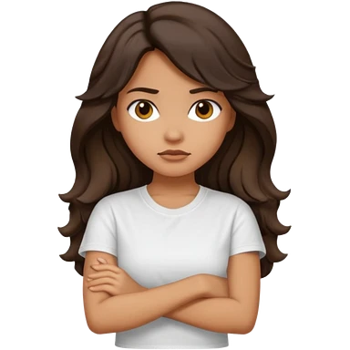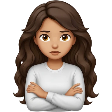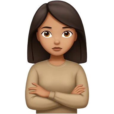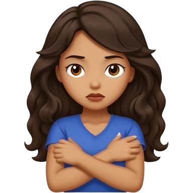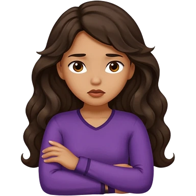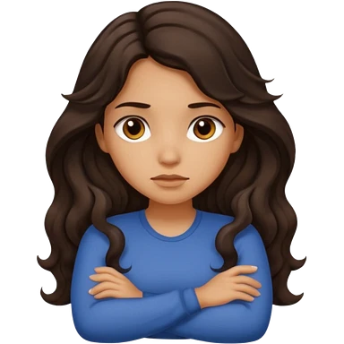 Tan girl dark long wavy hair crossing her arms with slight pout emoji | AI Emoji Generator
