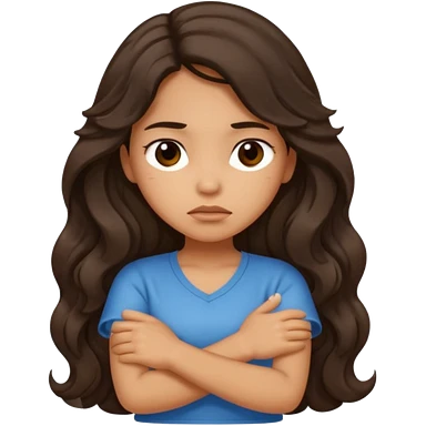 Hispanic girl with long dark wavy hair crossing her arms while pouting emoji