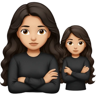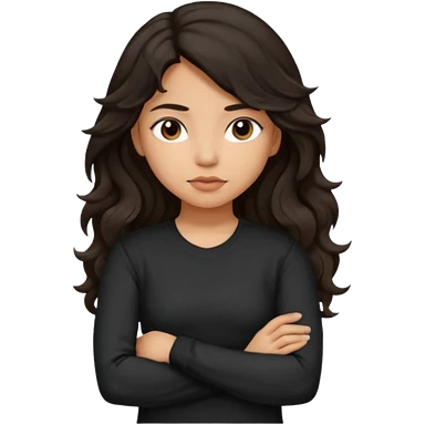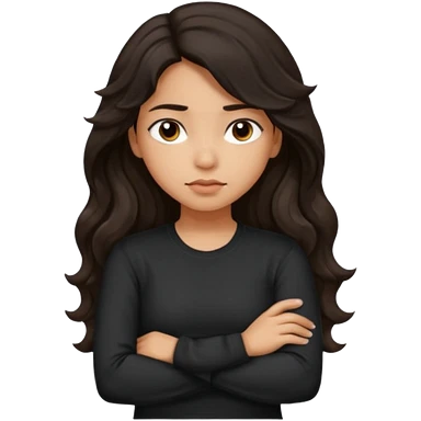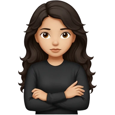 Hispanic girl dark long wavy hair crossing her arms with slight pout black long sleeve shirt emoji