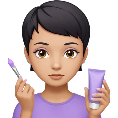tan girl pink shirt with black hair & a pixie cut no earrings doing cute pastel colors skin care emoji | AI Emoji Generator
