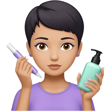 tan girl with black hair & a pixie cut no earrings doing cute pastel colors skin care emoji