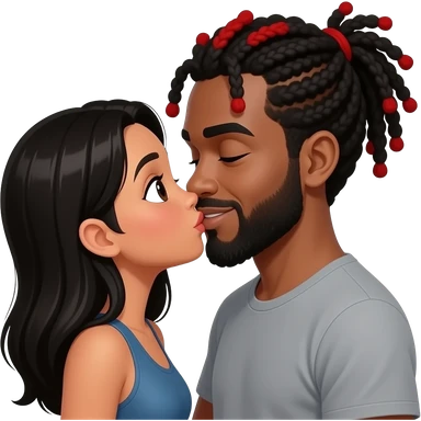 latina tan black hair girl kissing dark skin dreadhead with red on top and black on the bottom of the dreads brownskin guy emoji