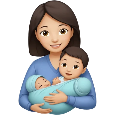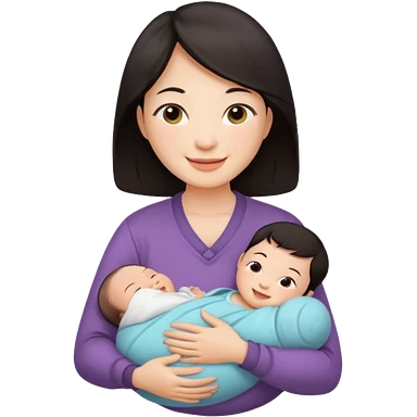 Tan girl with long hair holding newborn baby boy in arms emoji