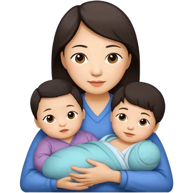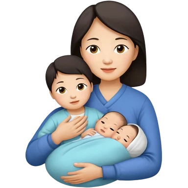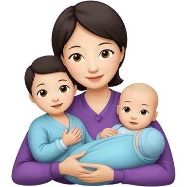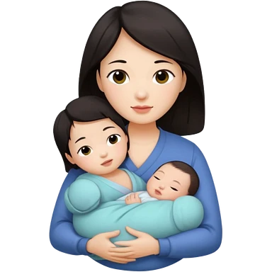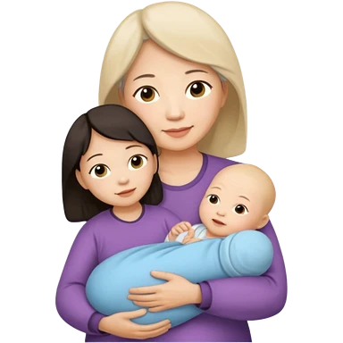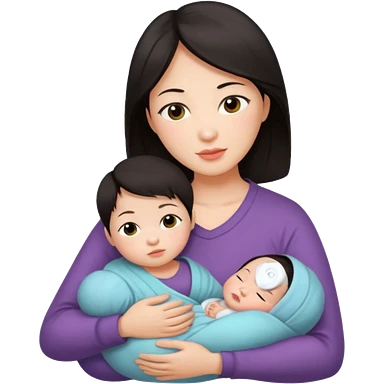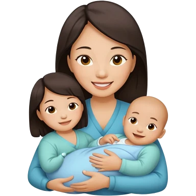 dark black hair girl cuddling a newborn baby and a girl with a high ponytail emoji