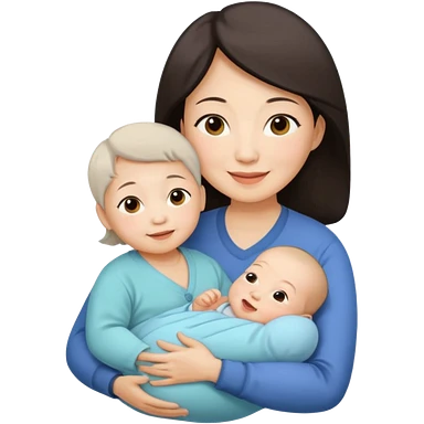A Chinese mother (around 40) with her newborn and her 60-year-old mother. emoji