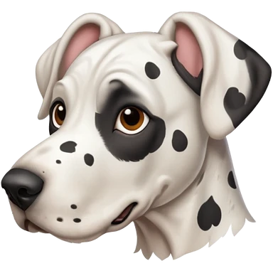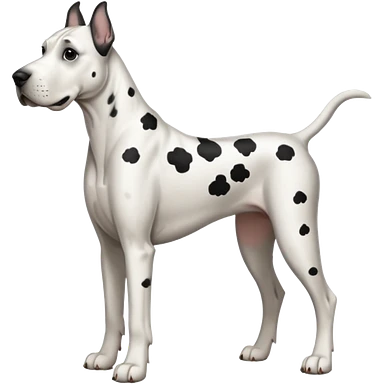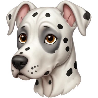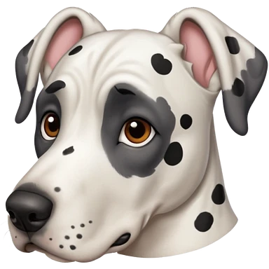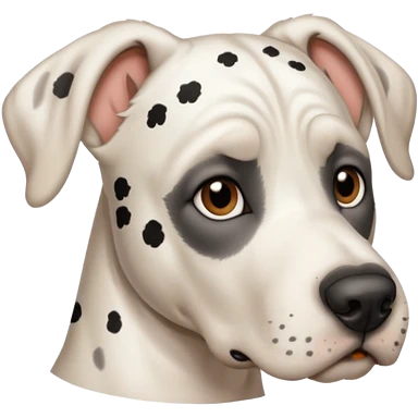 Gray Great Dane on king size mattress floppy ears white mattress emoji