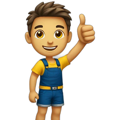 happy tan kid with yellow shirt and dark blue shorts thumbs up emoji