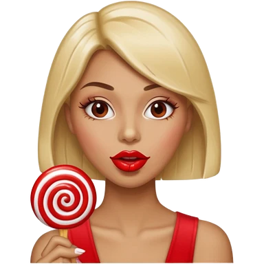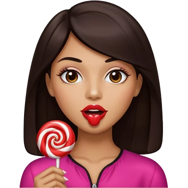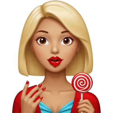 A lollipop in his mouth with Long nails and has glossy lips emoji