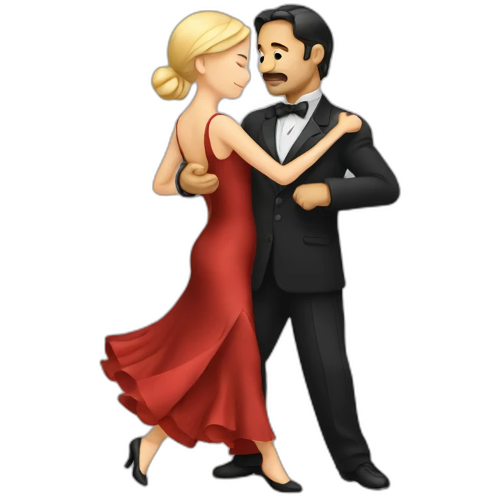 Tango dancers in a tango pose, the man is wearing a referee outfit emoji