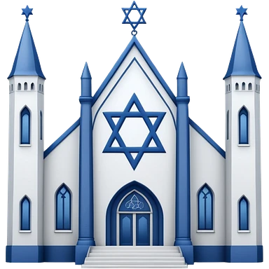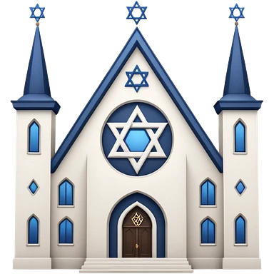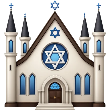 reform jewish synagogue similar in architecture to historical religious architecture in europe. the building should be white in color, featuring gothic architectural elements and star of david. avoid christian symbols. the emoji should be in ios emoji style. emoji