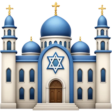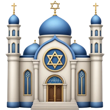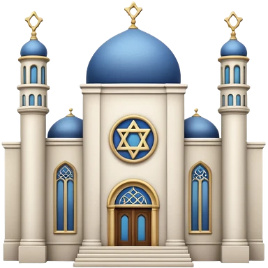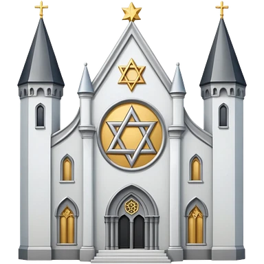 reform jewish synagogue similar in architecture to historical religious architecture in europe. the building should be white with silver/golden features, gothic architectural elements and star of david. no crosses. the emoji should be in ios emoji style. emoji