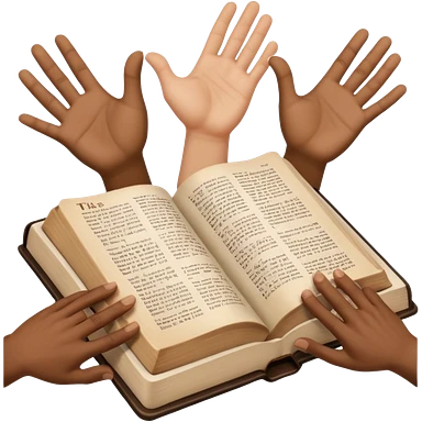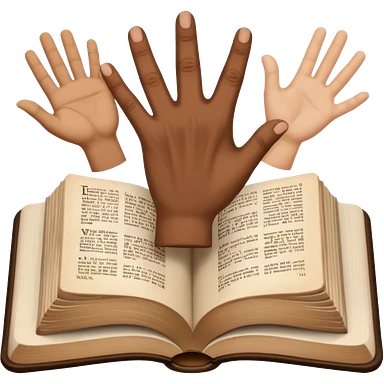 bible with different skin coloured hands on it shoing anti racism emoji