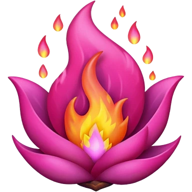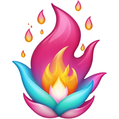 Floating hyper-realistic pink-magenta ember-flame emoji