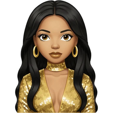 Tank, R&B Singer with dark brown hair, black sequin outfit emoji | AI Emoji Generator