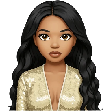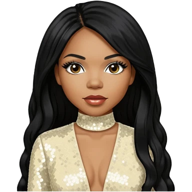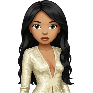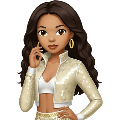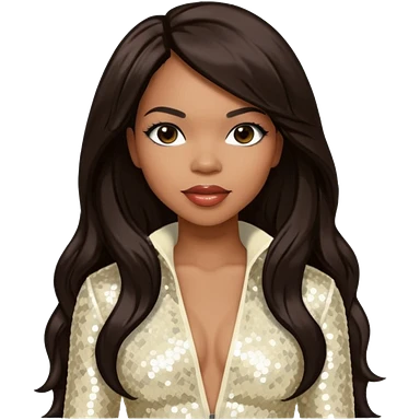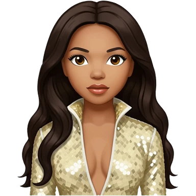 Tenitra Michelle Williams (b.1979), R&B Singer from Destiny's Child with long black hair, ivory sequin outfit, medium dark skin emoji