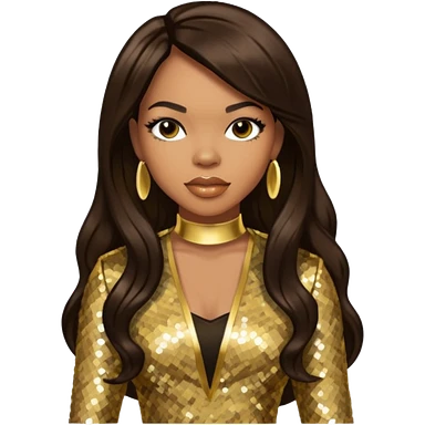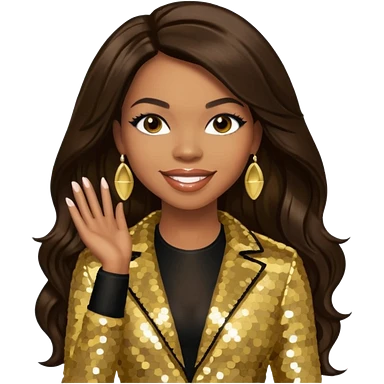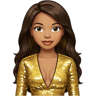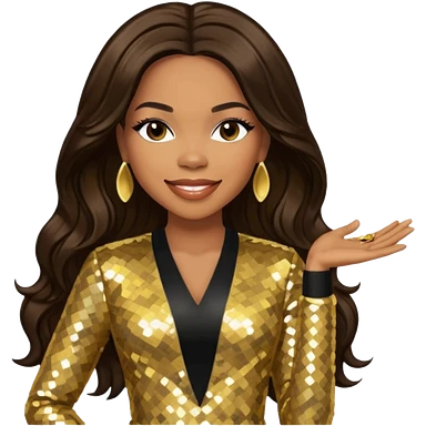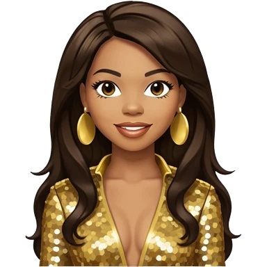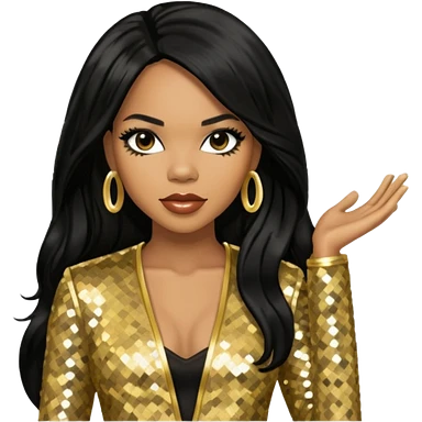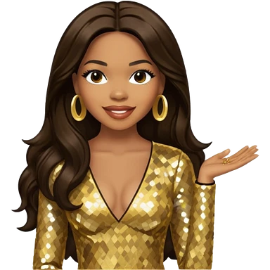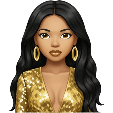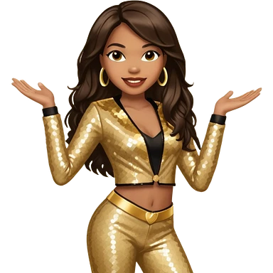 Tenitra Michelle Williams, R&B Singer from Destiny's Child with long black hair, gold sequin outfit, medium dark skin emoji