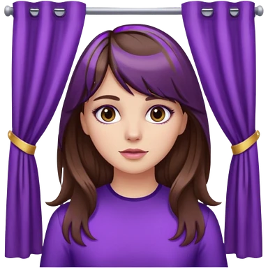 White girl with long brown hair and purple highlights and curtain bangs emoji