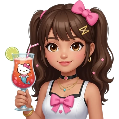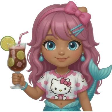 Tanned human girl hello kitty the Sanrio character themed brown and pink colored cocktail in gyaru merely mermaid emoji