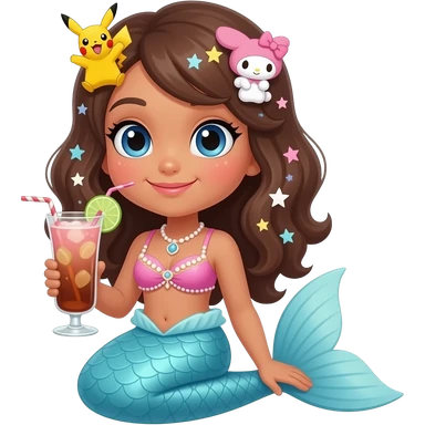 Tanned human girl Pokémon the Sanrio character themed brown and pink colored cocktail in gyaru merely mermaid emoji