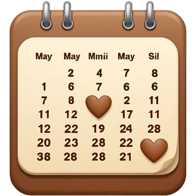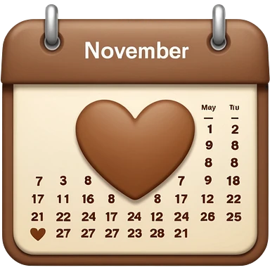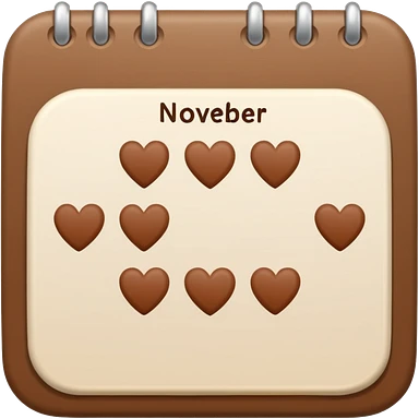 .make a November mini calendar with right brown hearts with cream colored dates wi rounded cornersI emoji