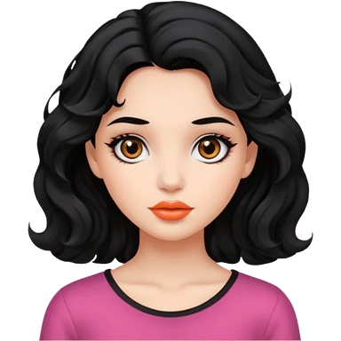 دختری با موهای مشکی مواج و چشم های مشکی و لب های هلویی emoji