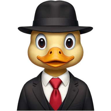 duck wearing a black tall hat and tie emoji