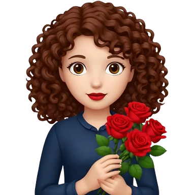 A girl with curly hair and res flowers in her hands emoji