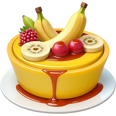 tart with sweet sous and fruit with banana food in 3d style no faces emoji