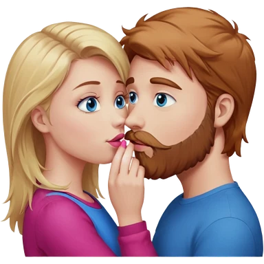 blonde girl blue eyes kissing blonde boy blue eyed white guy, reddish-brownish beard emoji