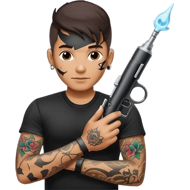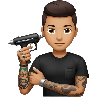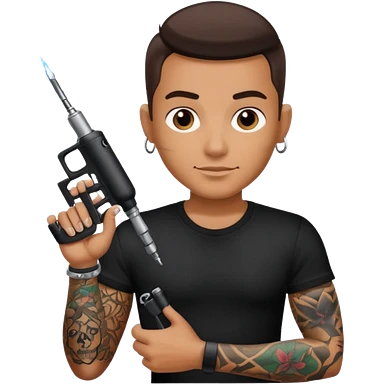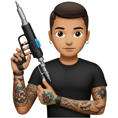Tattoo artist with tattoo gun. The artist is Hispanic girl emoji