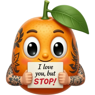 tattooed Kumquat holding sign saying “I love you, but STOP !” emoji