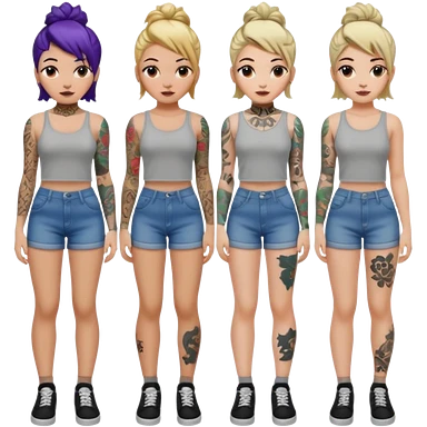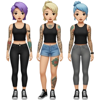TATTOOED GIRL FULL BODY DIFFERENT HAIRSTYLES COLORS emoji | AI Emoji Generator