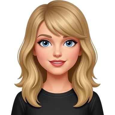 Taylor Swift with blue eyes, long blonde hair, periwinkle eyeshadow, red lipstick, periwinkle metallic halter dress, silver necklace and earrings emoji