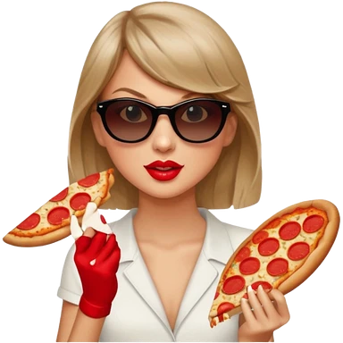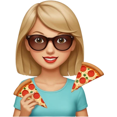 Taylor Swift, wearing sun glasses, holding a slice of pizza emoji | AI Emoji Generator