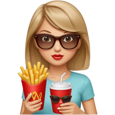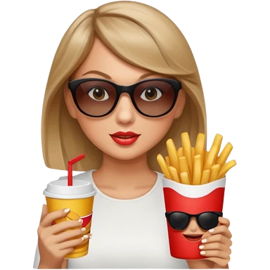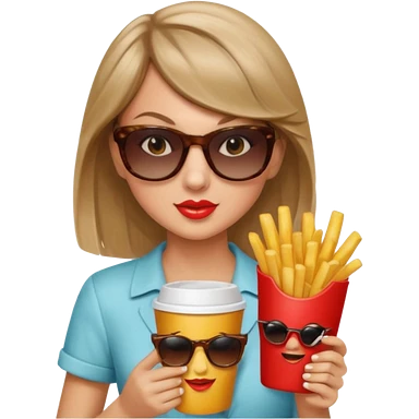 Taylor Swift, wearing sun glasses, holding a cup of fries emoji
