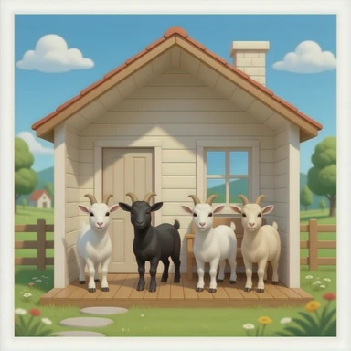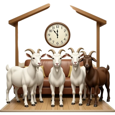 siete cabritas en una casa con un sofa, un reloj... que sea realista emoji
