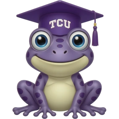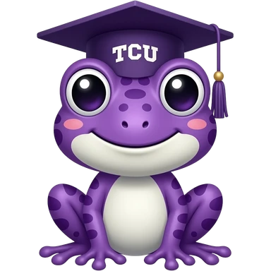 “Cute cartoon frog wearing a graduation cap, purple theme, representing TCU, soft rounded emoji style, friendly and playful” emoji