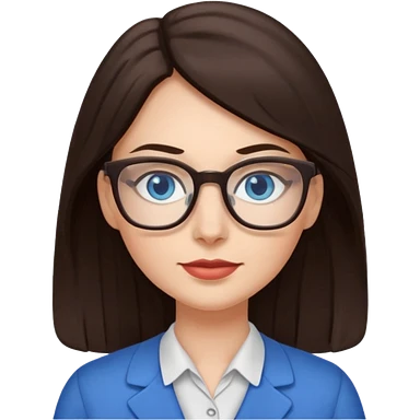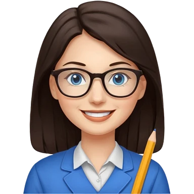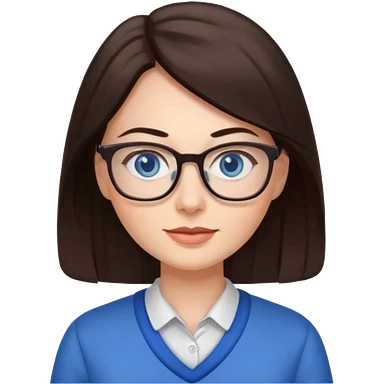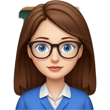 Italian Female teacher with long brown hair and blue eyes with black glasses emoji