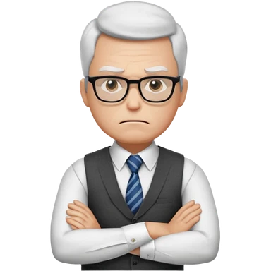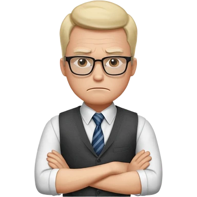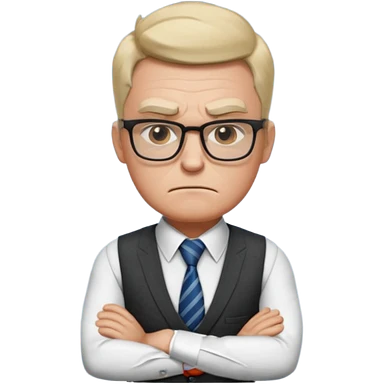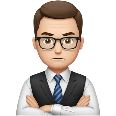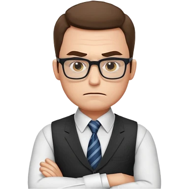 Frowns with Glasses, Strict Teacher: Man with square glasses, vest and tie, arms crossed, angry face emoji