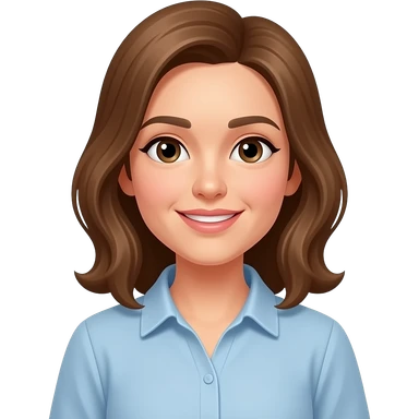 teacher with shoulder length hair, blue eyes, kind thin kinda chubby with a bright sweater on emoji